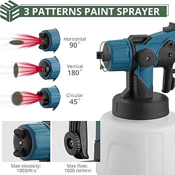 Easily switch between horizontal, vertical, and circular spray patterns for any surface. Adjust paint flow precisely from 0–1000 ml/min using the control knob for perfect coverage every time.